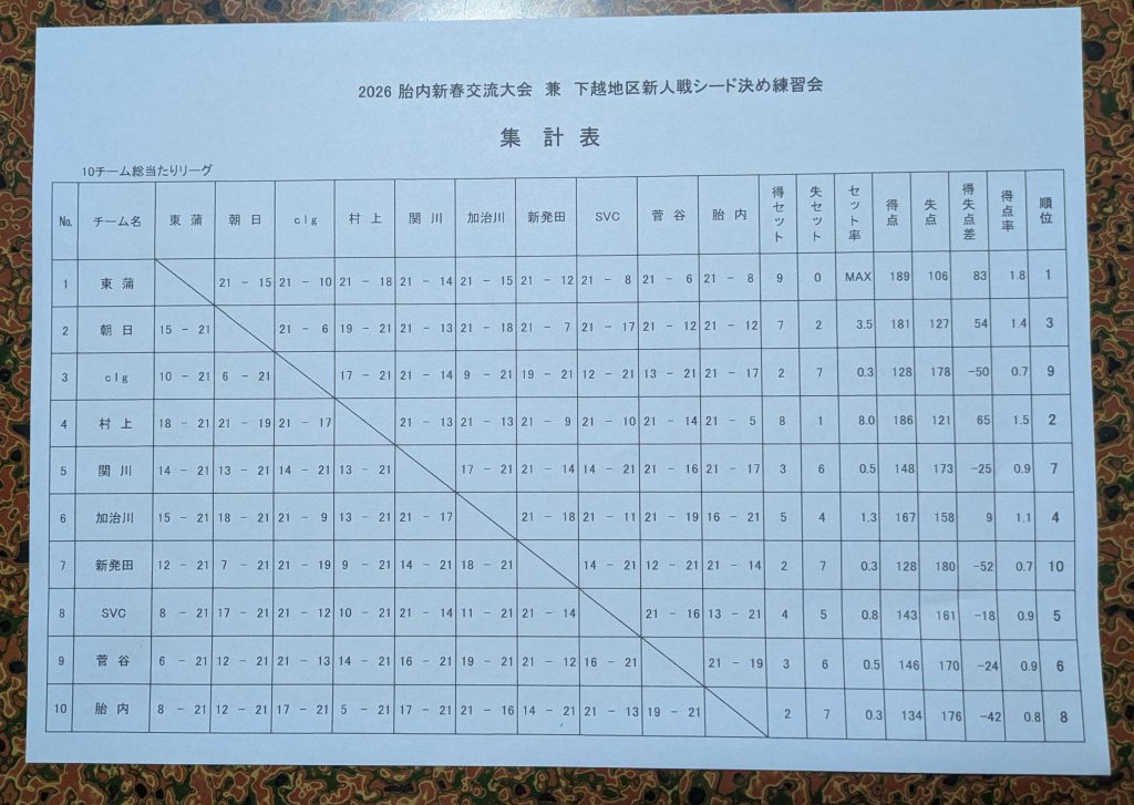 結果東蒲ジュニアが全勝し、第一シード権を獲得しました。下越の県大会枠は2枠しかない狭き門です。