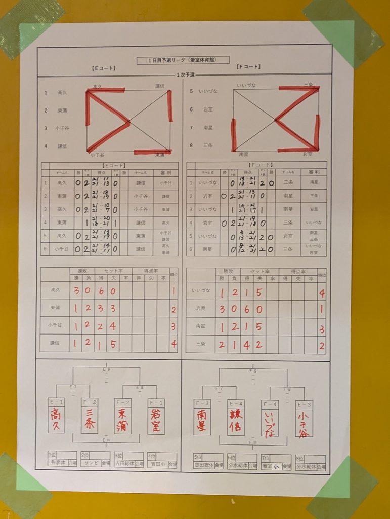 東蒲ジュニアは一日目、岩室体育館体育館で予選が行われ、岩室体育館会場で4位となり、二日目は吉田小学校体育館会場へ